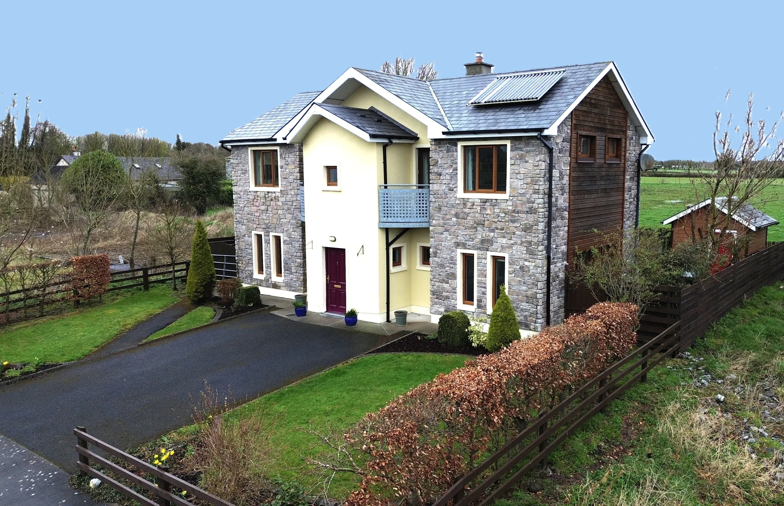 This impressive timber-framed residence offers generous, well-balanced accommodation, comprising four spacious bedrooms and three bathrooms, perfectly suited to modern family living.The property is presented in excellent condition throughout, with a bright and inviting living space that create a warm and comfortable atmosphere from the moment you step inside.